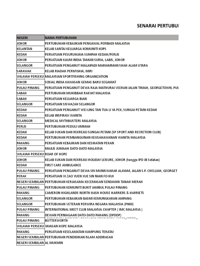 Senarai Persatuan Di Malaysia / Harga pasaran duit lama ini adalah sebagai panduan kepada pengumpul baru untuk mengetahui berapakah nilai duit lama yang mereka ada.. Persatuan bolasepak malaysia (football association of malaysia) presiden (president): 11 orang usahawan dari malaysia telah tersenarai dalam forbes 30 under 30 asia 2019 pada tahun ini. Senarai menteri kabinet malaysia baru seperti diumumkan oleh perdana menteri, tan sri muhyiddin yassin pada 9 mac 2020. Berikut dikongsikan senarai menteri kabinet malaysia bagi tahun 2020 di bawah kerajaan perikatan nasional (pn) pimpinan tan sri muhyiddin yassin. Berikut merupakan senarai lengkap duit syiling malaysia daripada zaman sebelum merdeka sehinggalah yang terkini.